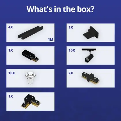 | Manufacturer Name | Complete L shaped 1-Phase Track Set Black incl. 10x Spot fixture + GU10 2700K 3W Dim – 2 x 2 meter | |