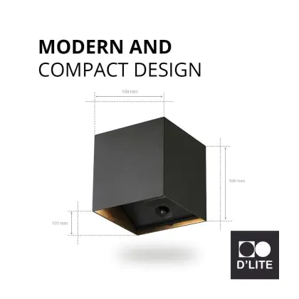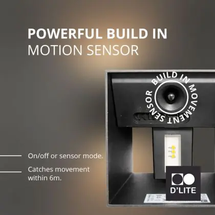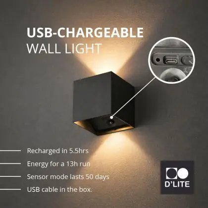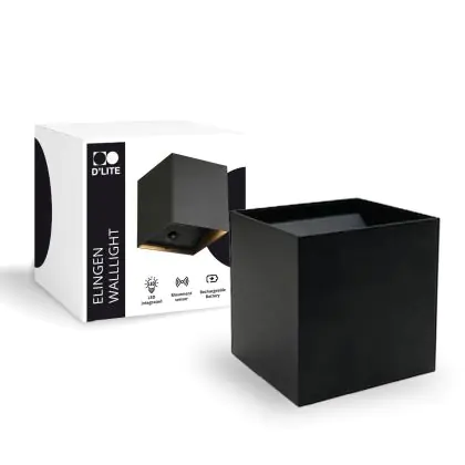 D'Lite Wall Light Elingen Aluminium Black Up & Down 2.9W 170lm - 830 Warm White | IP65 - Battery-Powered - Light Sensor