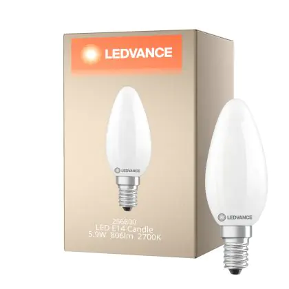 Ledvance Classic LED E14 Candle Frosted 5.9W 806lm - 827 Extra Warm White | Dimmable - Replaces 60W