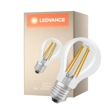 Ledvance Classic LED E27 Pear Filament Clear 5W 1055lm - 827 Extra Warm White | Replaces 75W