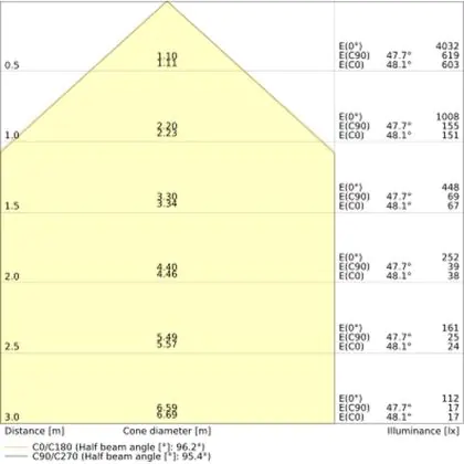A beam angle indicates the angle of the light beam coming from a light source. The smaller the radiation angle in degrees (D), the narrower the beam angle.
