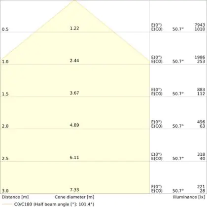 A beam angle indicates the angle of the light beam coming from a light source. The smaller the radiation angle in degrees (D), the narrower the beam angle.