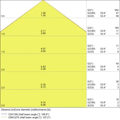 Beam angle of 120°
