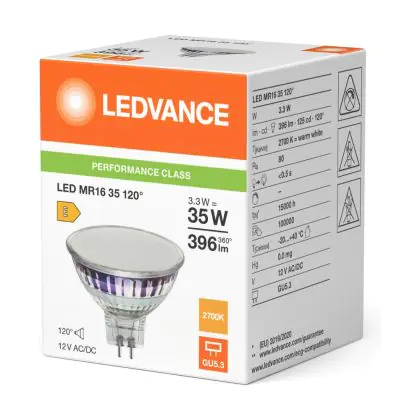 Ledvance LED GU5.3 PAR16 Performance 3.3W 396lm 120D - 827 Extra Warm White | Replaces 35W