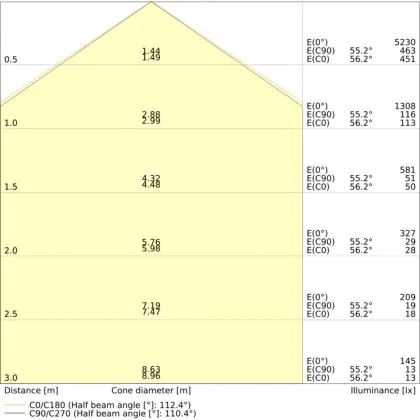 ![]() The colour code is a combination of colour rendering (CRI) and light colour (Kelvin). The first number indicates the colour rendering (1 = very poor colour rendering, 9 = maximum colour fastness). The second and third number contains the light colour. Example: the colour code 830 consists of good colour rendering (8) and warm white light (3000K). |