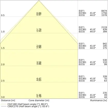 ![]() The colour code is a combination of colour rendering (CRI) and light colour (Kelvin). The first number indicates the colour rendering (1 = very poor colour rendering, 9 = maximum colour fastness). The second and third number contains the light colour. Example: the colour code 830 consists of good colour rendering (8) and warm white light (3000K). |