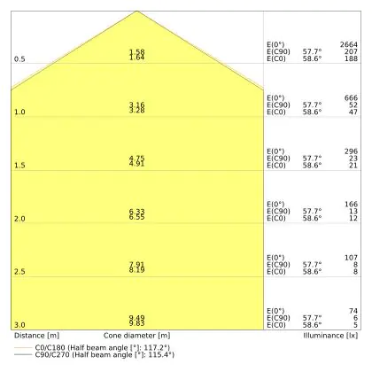 ![]() The colour code is a combination of colour rendering (CRI) and light colour (Kelvin). The first number indicates the colour rendering (1 = very poor colour rendering, 9 = maximum colour fastness). The second and third number contains the light colour. Example: the colour code 830 consists of good colour rendering (8) and warm white light (3000K). |