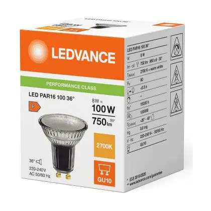 Multipack 10x Ledvance LED PAR16 GU10 Reflector 8W 750lm 36D - 827 Extra Warm White | Replaces 80W