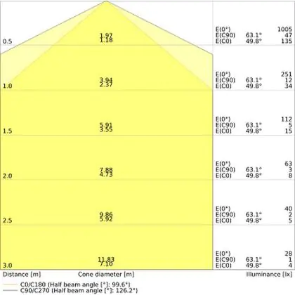 ![]() The colour code is a combination of colour rendering (CRI) and light colour (Kelvin). The first number indicates the colour rendering (1 = very poor colour rendering, 9 = maximum colour fastness). The second and third number contains the light colour. Example: the colour code 830 consists of good colour rendering (8) and warm white light (3000K). |