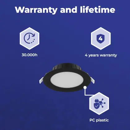 The lifespan is an indication of the number of hours a product will last. This refers only to the hours the product is actually on. LED lighting has a significantly longer lifespan than conventional lighting. LED lighting therefore lasts much longer. How long you can actually use a product depends on the extent of its (daily) use. |