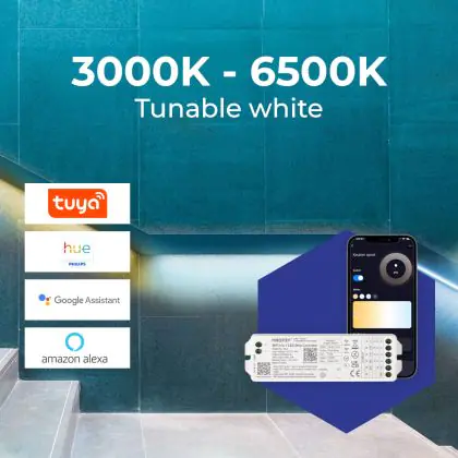 This number indicates how many LED lighting points there are per metre on the LED strip. The rule is: the more LEDs per metre, the more powerful the light/light output.