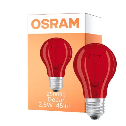 Osram LED Star Classic Decor E27 Pear Filament Frosted 2.5W 45lm - Red | Replaces 7W