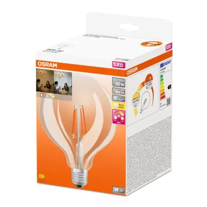 Osram SuperStar LED E27 Globe 125mm Filament Clear 7W 806lm - 822-827 Dim To Warm | Dimmable - Replaces 60W