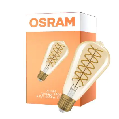 Osram Vintage 1906 LED E27 Edison Filament Gold 8.8W 806lm - 824 Extra Warm White | Dimmable - Replaces 60W
