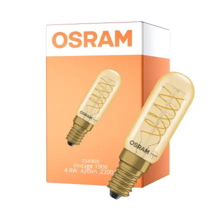 Osram Vintage 1906 LED Special Shapes E14 Tubular Amber 4.8W 420lm - 822 Extra Warm White | Dimmable - Replaces 40W